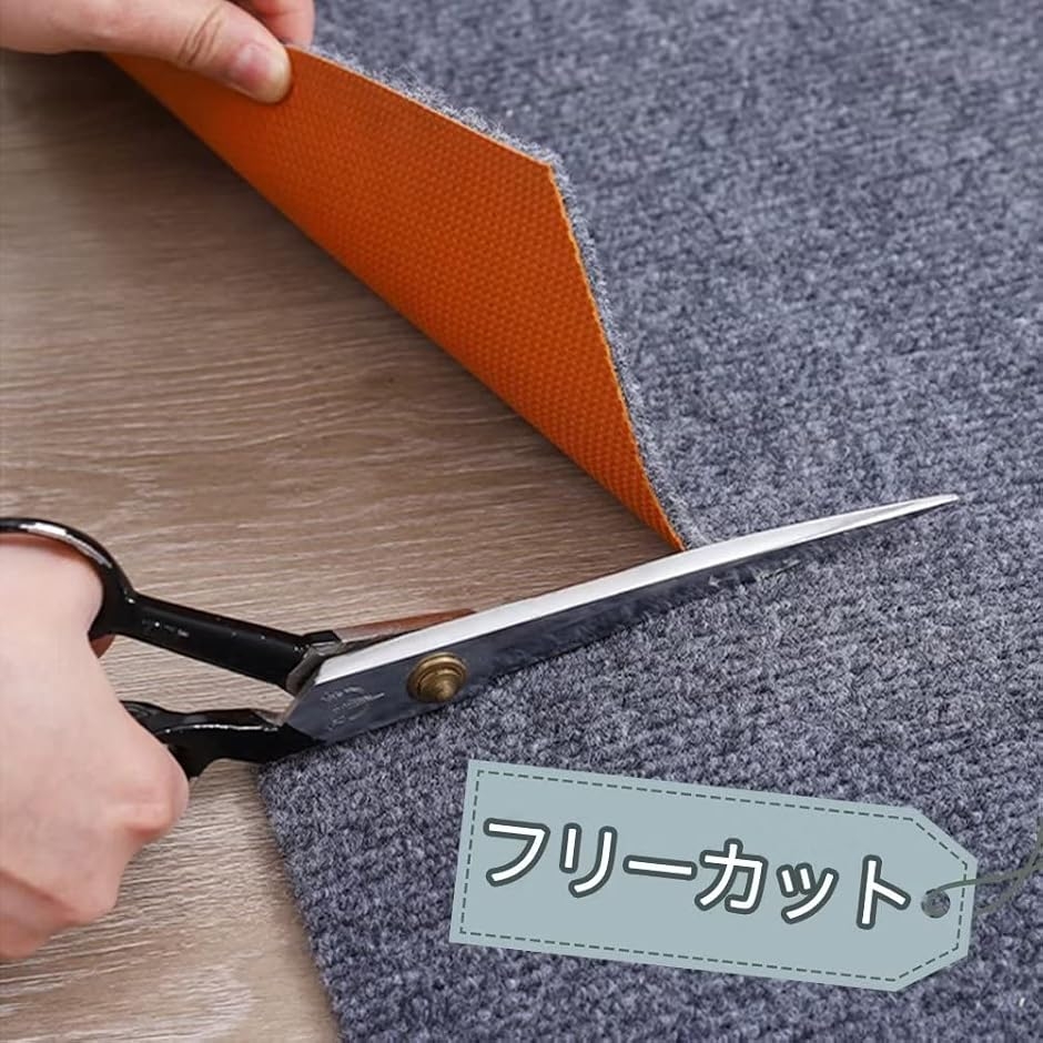 「自由カット」スペースに合わせて自由に組み合わせて敷くことができ、床面の形に合わせて、ハサミで簡単にカットできる。