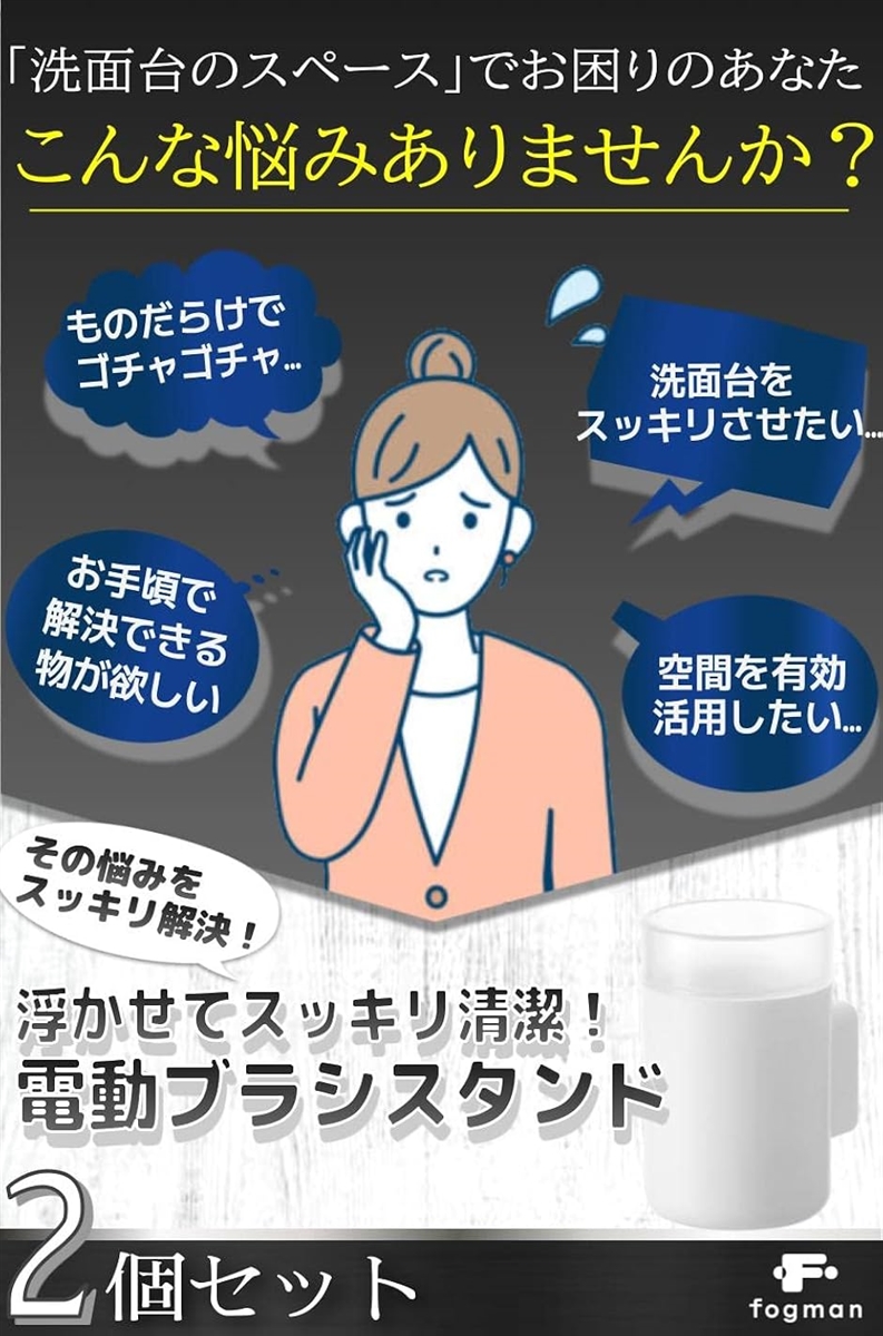 「洗面台のスペース」でお困りのあなた こんな悩みありませんか? ものだらけでゴチャゴチャ…洗面台をスッキリさせたい… お手頃で解決できる物が欲しい 空間を有効活用したい… その悩みをスッキリ解決。 浮かせてスッキリ清潔。電動ブラシスタンド.