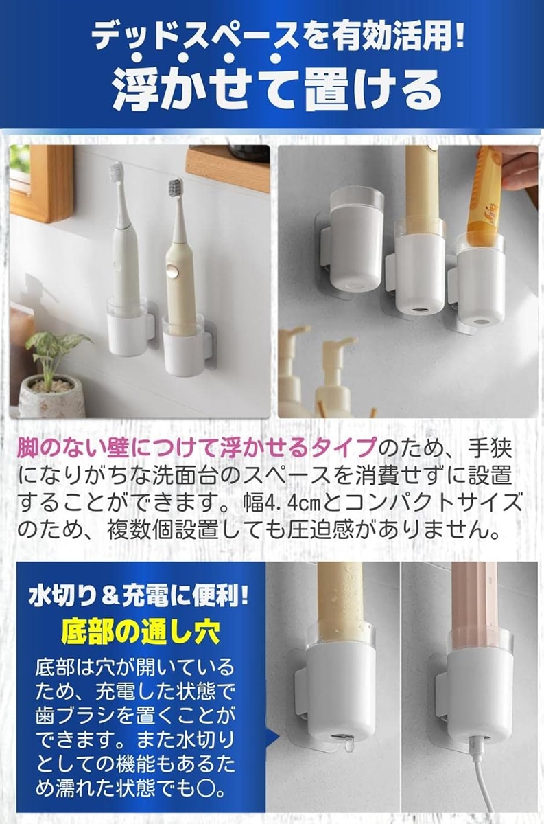 | 商品名 | 電動歯ブラシスタンド 浮かせる 清潔 充電 おしゃれ 壁 鏡 省スペース 2個セット |