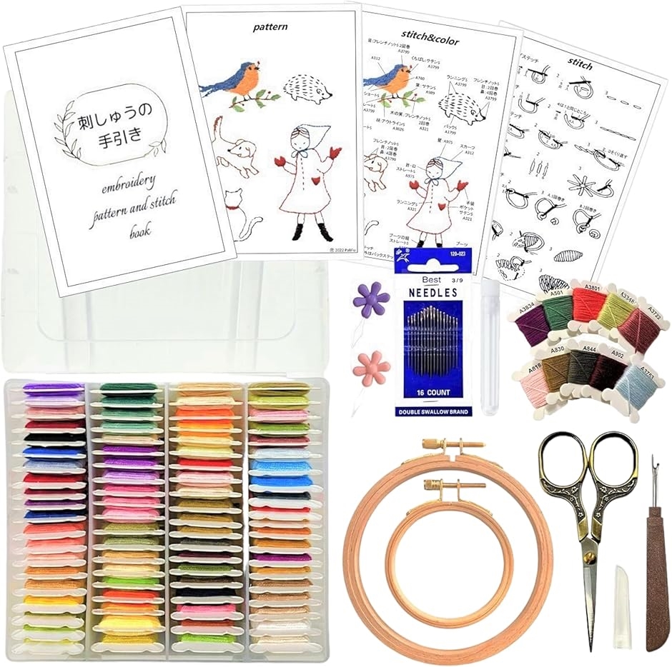 | 商品名 | 刺繍キット 刺繍糸 刺繍枠 初心者 キット 刺繍 図案 パターン ステッチ 解説書 付き 届いた日から始められる刺繍セット 80colors |