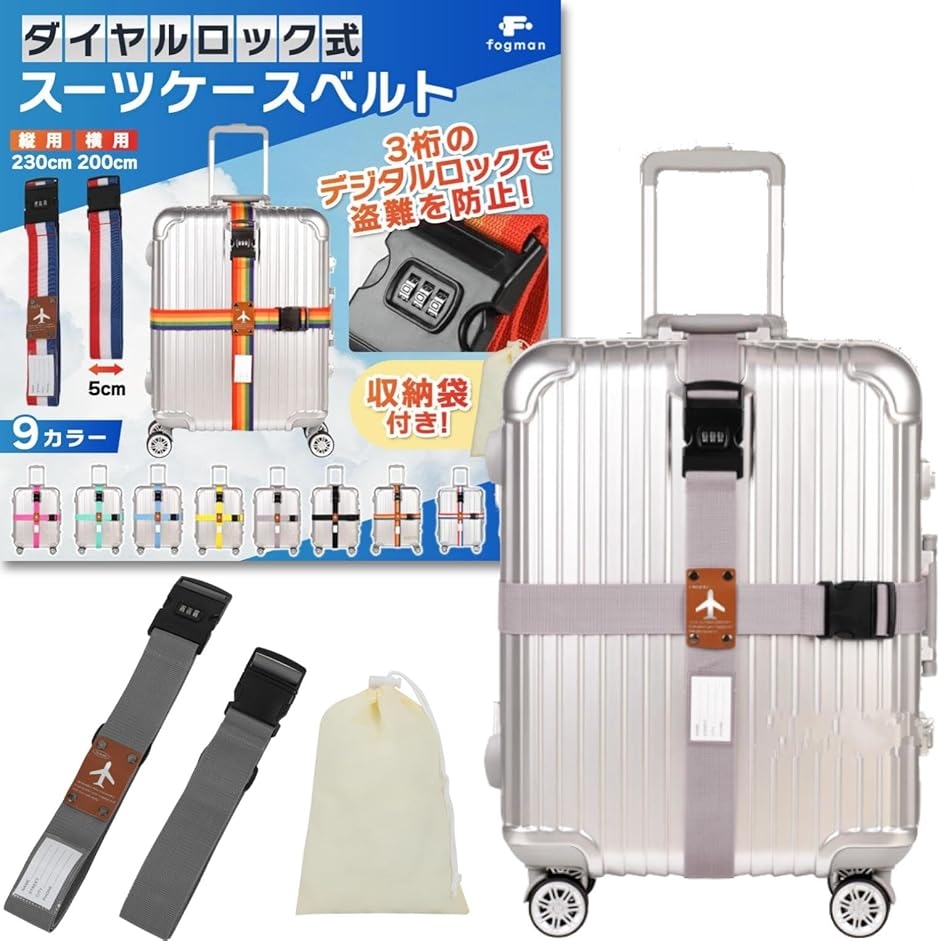 | 商品名 | スーツケースベルト 鍵付き ロック 十字 3桁ダイヤル式 収納袋付き 2本セット グレー |