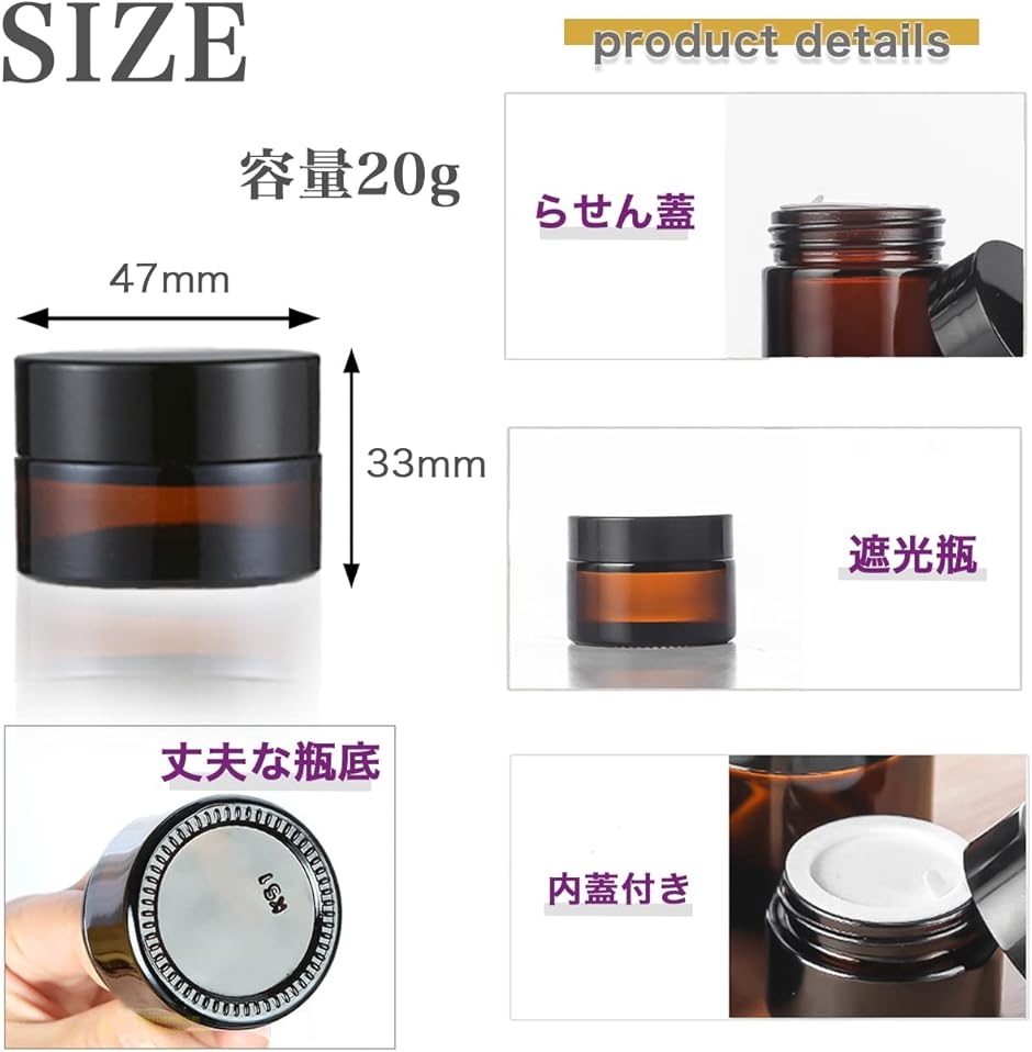 | 商品名 | クリーム容器 遮光瓶 ガラス製 ジャー 詰め替え 保存用 中蓋付き |