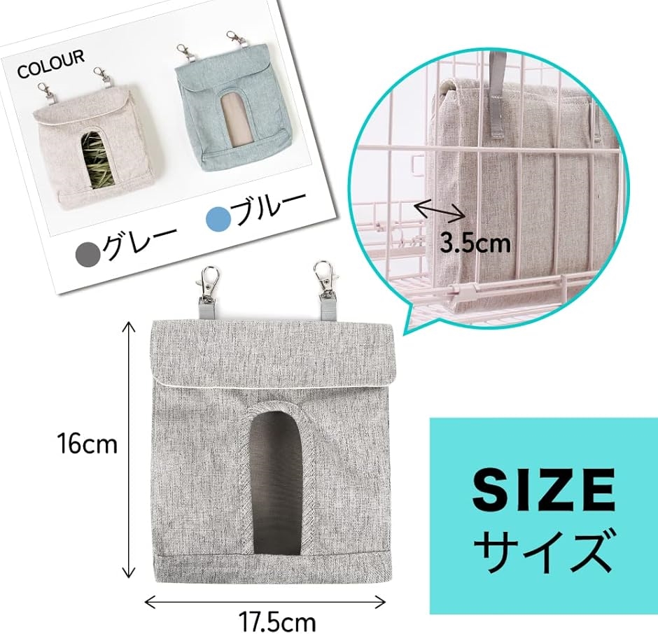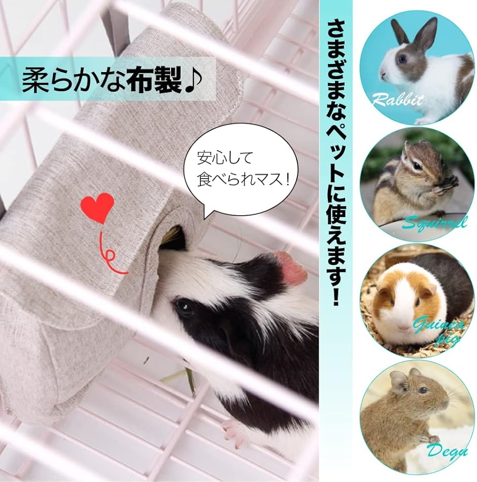 「便利な引っ掛けタイプ」オシッコなどで牧草が汚れることを防止でき、食べるときに周りに散らかしにくいのでケージ内が汚れにくくなっております。
