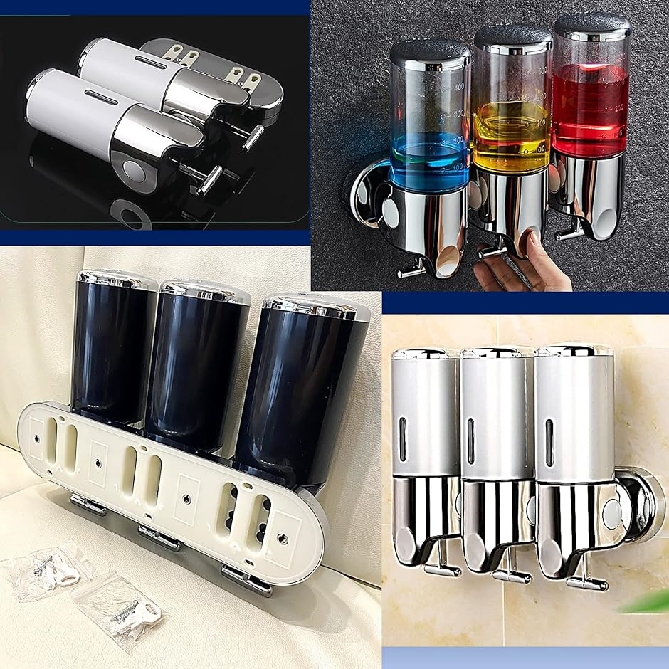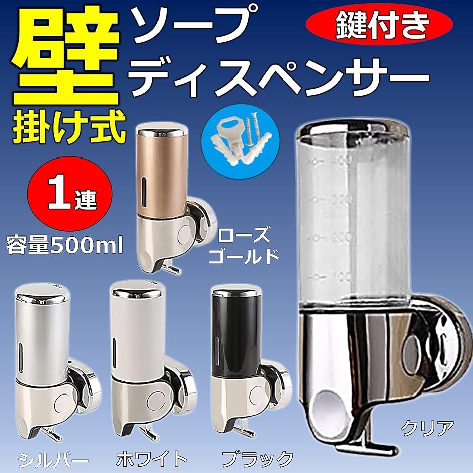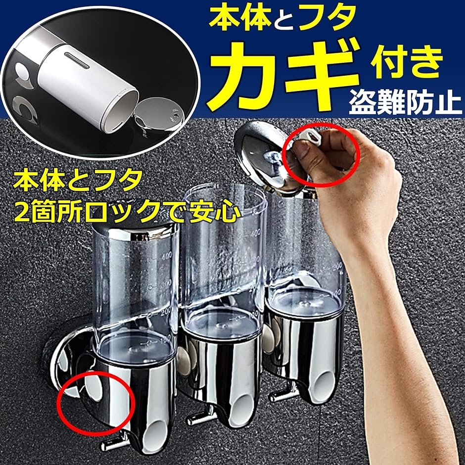 | 商品名 | 盗難防止ロック付き 浴室 洗面所 詰替え 大容量 ソープディスペンサー シャンプー リンス 壁掛け 1連 シルバー |