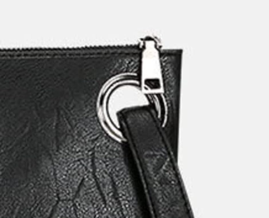 レザー調の質感で高級感あるデザインの、女性用クラッチバッグです。