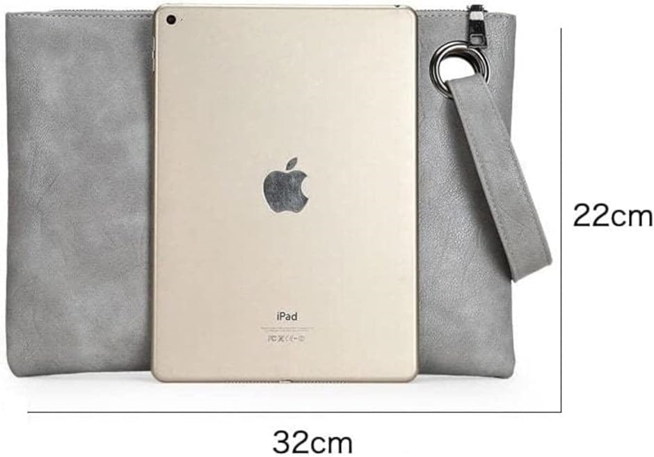 「多機能性」クラッチバッグ内側はメインポケット付き、9.7インチのipadにも収納でき、内ファスナーポケットとフリーポケットがあり、スマホと財布と鍵類、そして喫煙家であればタバコとライターを収納できるサイズ感は、ちょっとした外出時や休日に必要な少ない荷物をおしゃれに携帯できます。
