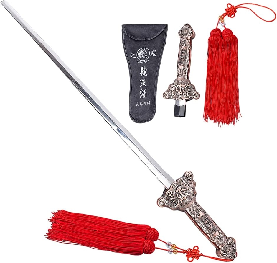 ハンドルには縁起の良い雲龍柄の彫刻をデザインし、合金製、レッドブロンズ色で高級感があり剣舞を引き立てます。