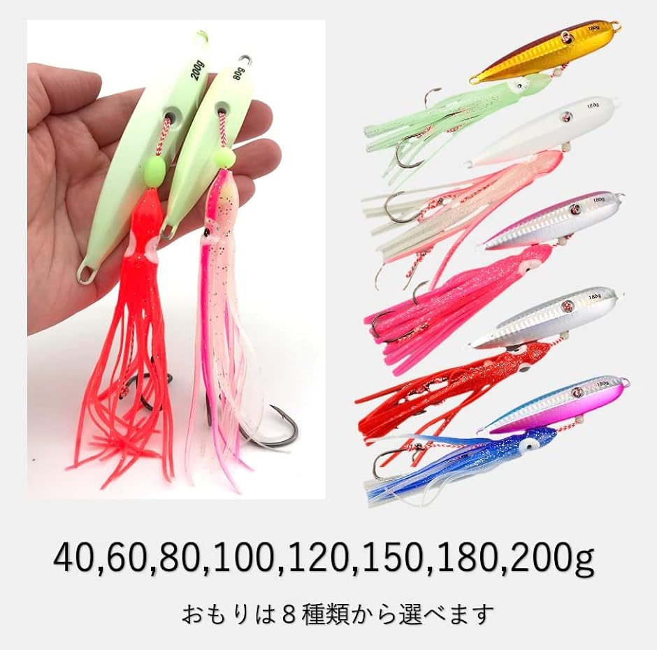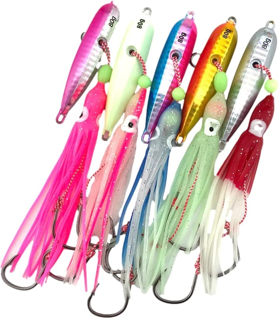 | 商品名 | インチク タコベイト 仕掛け 釣り フィッシング 船釣り タイラバ 青物 根魚 蛍光 タラ釣り イカ釣り 回遊魚 タチウオ 60g インチク&タコヘイド 5色セット |