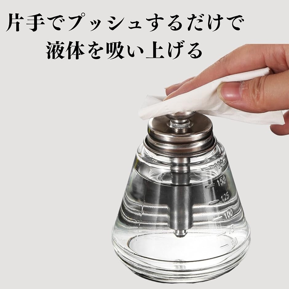 片手で軽くプッシュするだけで、瞬時に液体を吸い上げることができるため、拭き取り作業に非常に便利です。