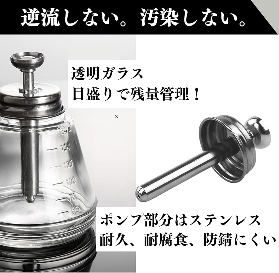 | 商品名 | 180ml プッシュダウンポンプディスペンサー 液体保存容器 ガラス容器 ロック可能 目盛り付き |