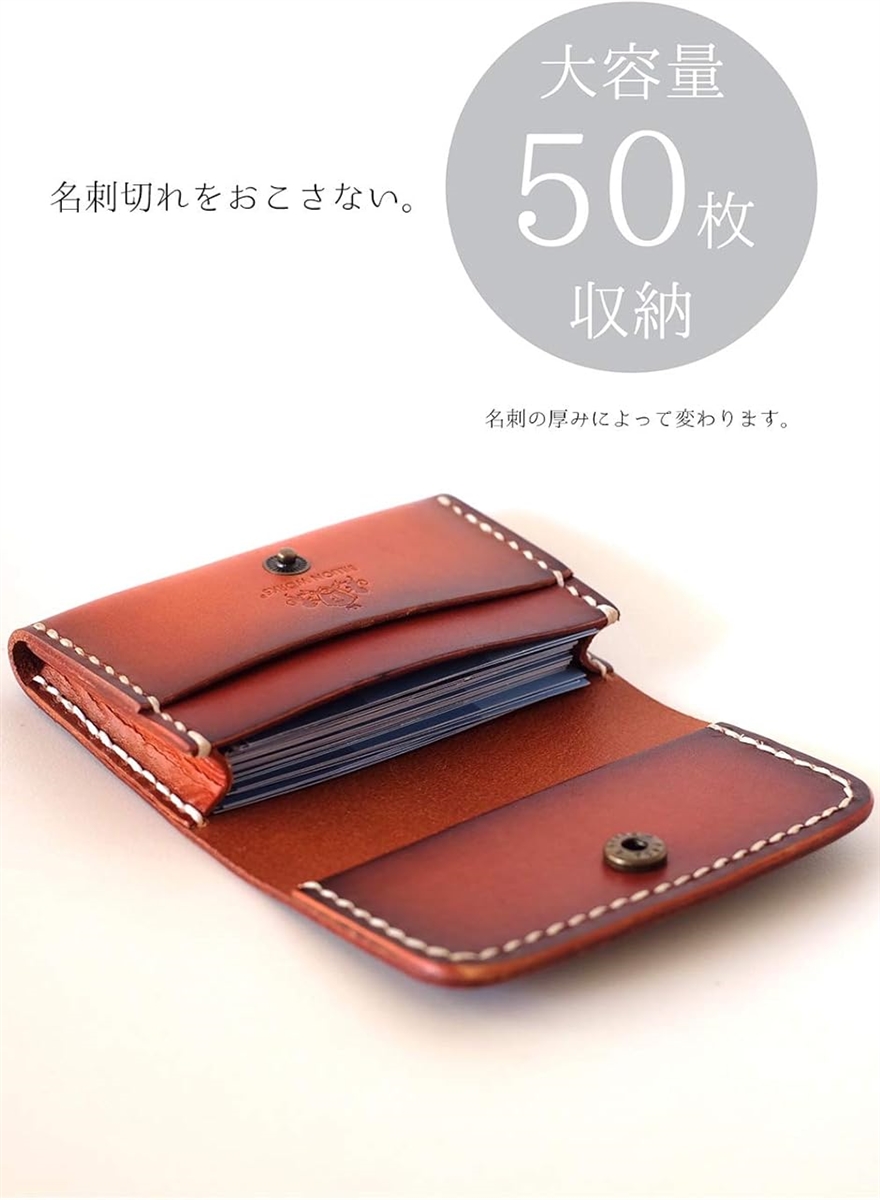 革が馴染むまで少し時間はかかりますが、使い込むほど味わい深い色へと変化し、長きに使える名刺ケース。