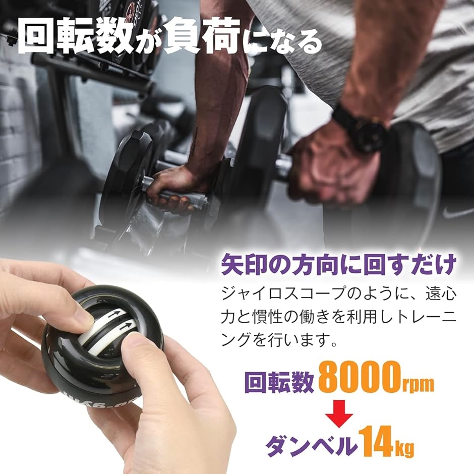 《遠心力を利用したトレーニング》高速でジャイロ回転するボールの遠心力を利用して、筋肉や握力を鍛えるスナップボールです。