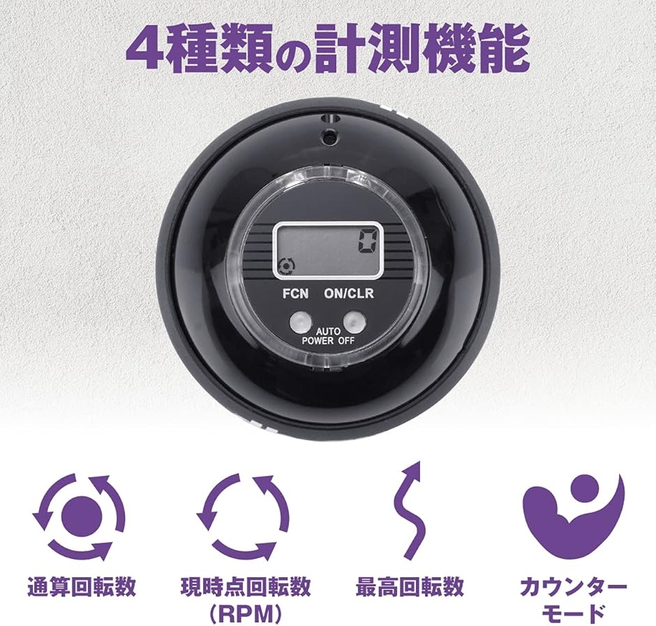 《4種類の計測機能を搭載》カウント機能が完備されており、トレーニング中の通算回転数や最高回転数などを計測しその場でデータを確認することできます。