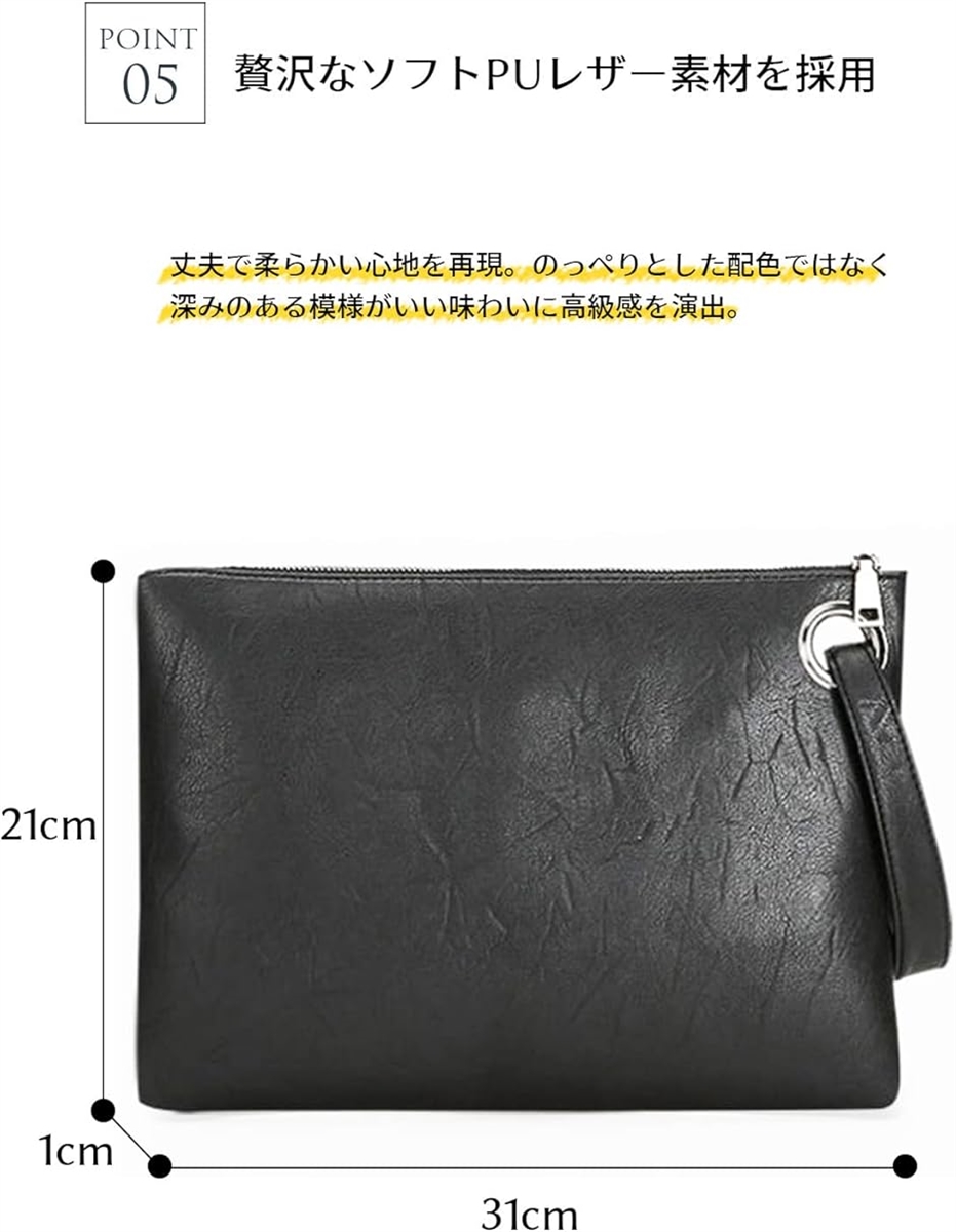 ・「素材」贅沢なソフトPUレザー素材を採用、日常のセカンドバッグとして丈夫で柔らかい心地を再現。