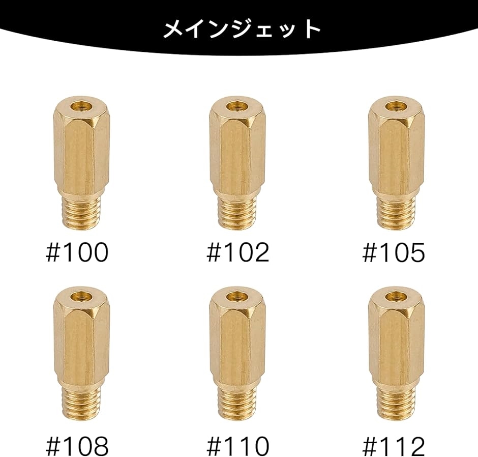 「メインジェットセット詳細」メインジェット 六角大 #100#102#105#108#110#112。