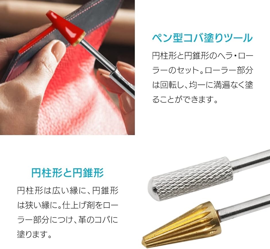 | 商品名 | レザークラフト 工具 革 コバ 補修 コバ塗り 仕上げ 初心者 円柱形・円錐形 2種セット |