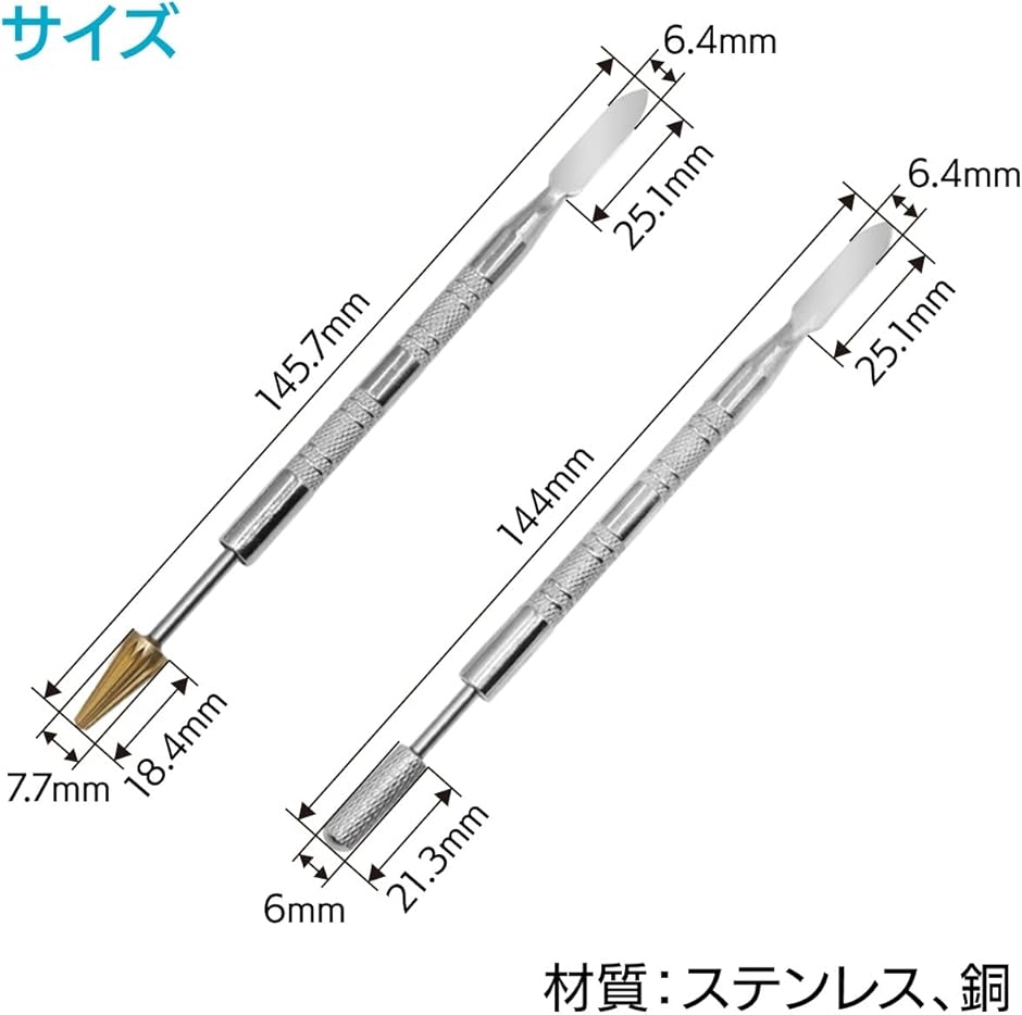 「仕様」サイズ:(円錐形)全長145.7mmx直径7.7mm (円柱形)全長144mmx直径6mm / 材質:ステンレス、銅 *モニターの環境等により、色の見え方に若干差が生じる場合がございます。
