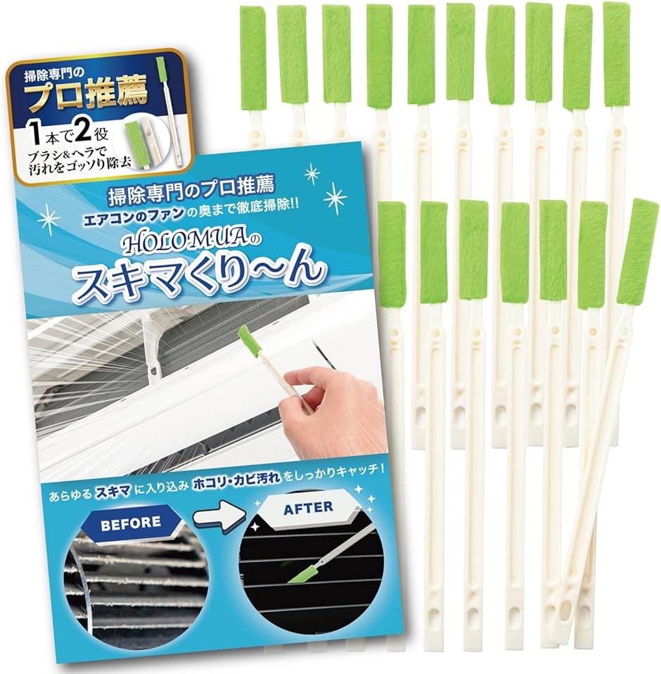 HOLOMUAのスキマくり〜んはエアコン掃除ブラシ用としてだけではなく、便座の隙間、洗面所の水垢、キッチンのコンロ周り、洗濯機の隙間、水筒 ブラシ、車のエアコンなど多機能に利用可能です。