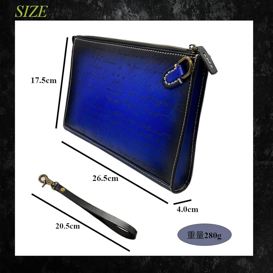 | 商品名 | クラッチバッグ メンズ セカンドバッグ 本革 結婚式 イタリアンレザー カリグラフィー ブルー |