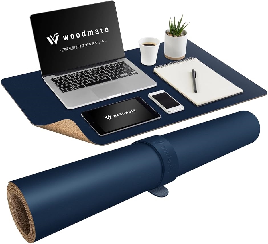 | 商品名 | Woodmate 空間を調和するデスクマット 空間デザイナー監修 レザー 裏面コルク デスクパッド ダークブルー 60cm x 35cm |
