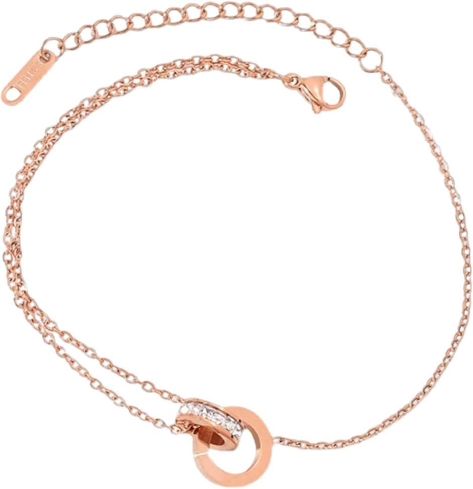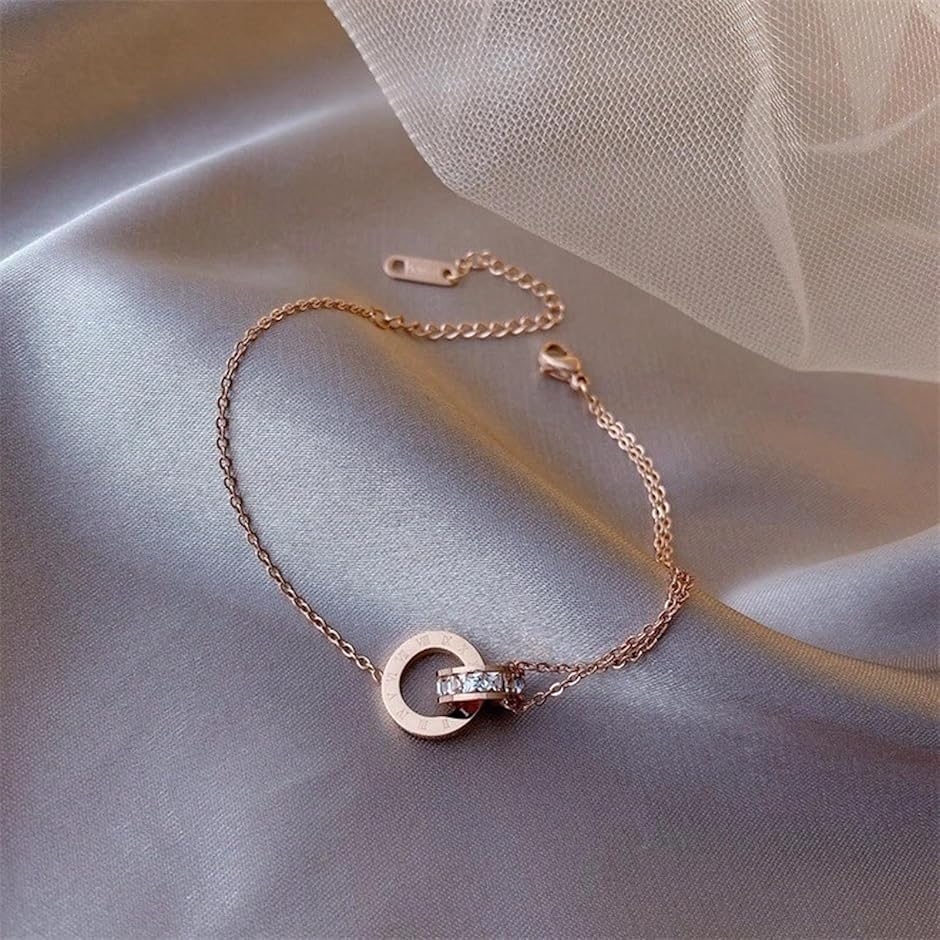 ・アンクレットのチャーム部分は小さくて、かわいいリングが2つ重なったデザイン。1つのリングはきらきら装飾のデザイン、 もう1つはローマ数字が刻印されているデザインで足元を華麗に演出してくれます。