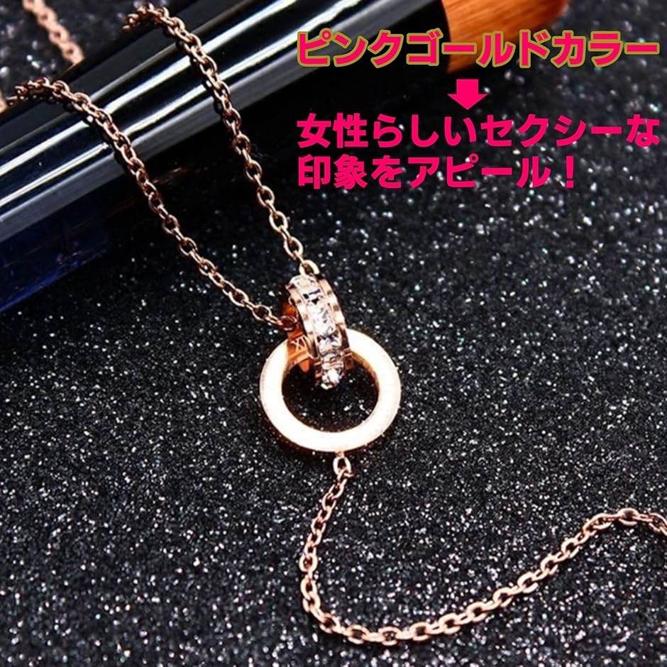 上品できれいなピンクゴールドカラーのチェーンにチャームはリングが2つ重なったデザインのアンクレットです。