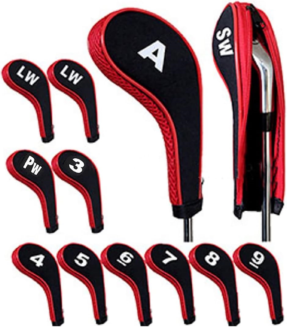 商品名 | アイアンカバー ゴルフ ヘッドカバー セット 番手付き 番手プリント ファスナー付き ロングネック 12個セット レッド |