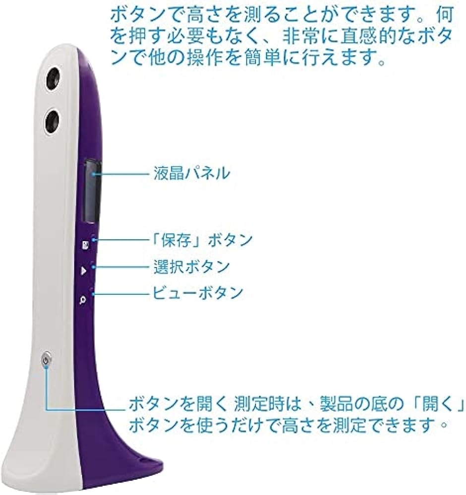 ・シンプルな操作:1つのボタンだけを押して、高さのデータを取得できます。