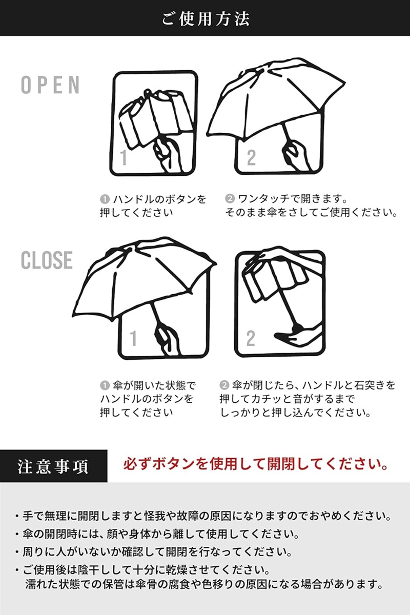 ・「晴雨兼用、紫外線カット」300Tの高密度素材 (傘の素材として密度の高い素材) を使用。