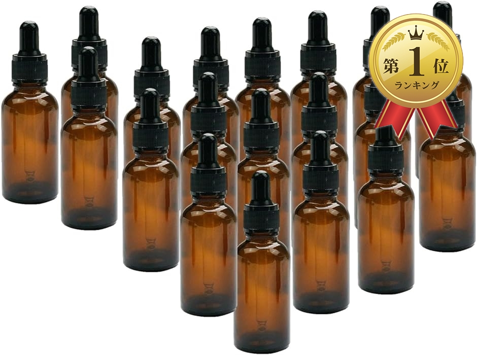 ・「遮光瓶20本セット」アロマオイル、化粧水等の小分け、保存用のスポイト付きです。