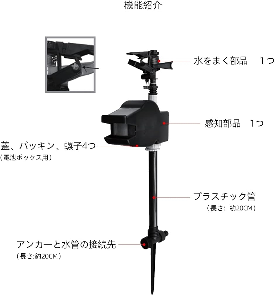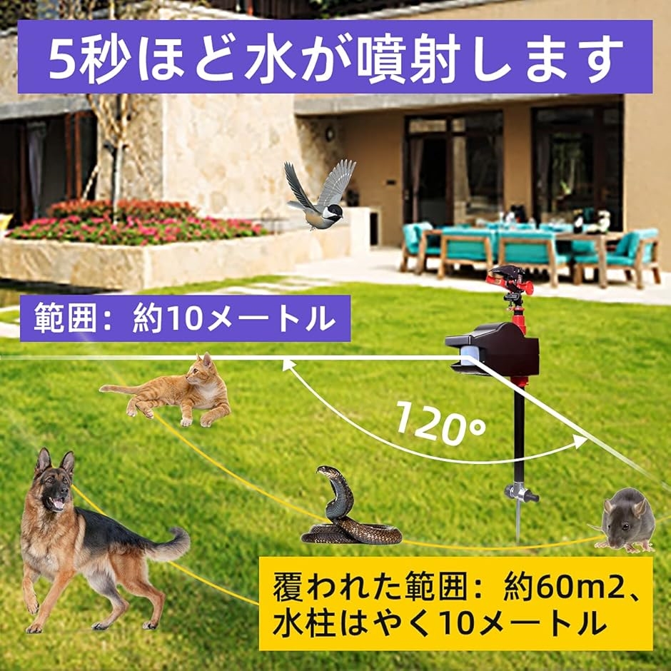 | 商品名 | 自動スプリンクラー 害獣対策 超音波 猫避け 動物駆除器 鳥避け 猫よけ カラス、リス、鼬、鹿、猫など対応 鳥害対策 無傷害 赤外線 畑&庭園&農場保護 |