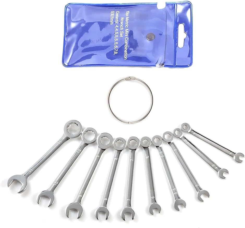 | 商品名 | ミニスパナセット 極薄スパナ コンビスパナセット 10本組 4mm/4.5mm/5mm/5.5mm/6mm/7mm/8mm/9mm/10mm/11mm コンビネーションレンチセット ショートタイプ |