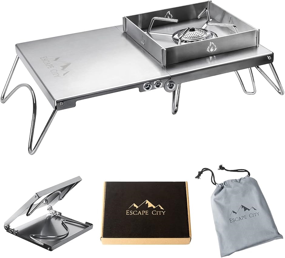 | 商品名 | 遮熱テーブル 遮熱板 シングルバーナー用 軽量 折り畳み ステンレス製 キャンプ用品 ソト SOTO ST-310/ ST-330 イワタニ トランギア 五種類バーナー対応 収納袋と風除板付 |