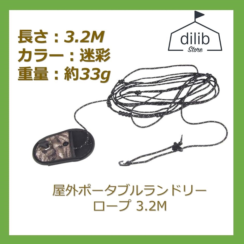 | 商品名 | 物干しロープ 洗濯ひも 折りたたみ 防風 伸縮 携帯便利 旅行 屋外 室内 キャンプ 洗濯物干し 洗濯ロープ ケース付き アウトドア 迷彩色 3.2M |