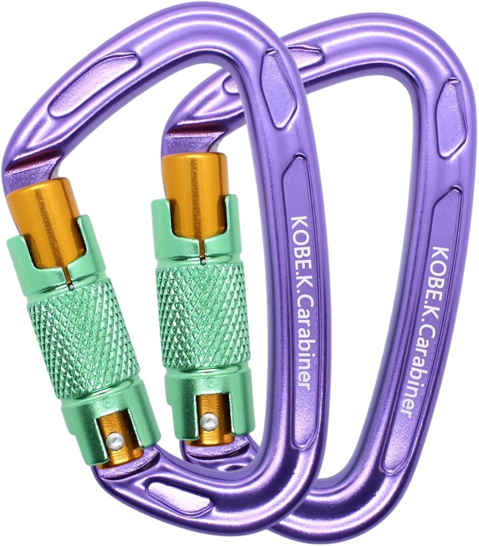 | 商品名 | カラビナ専門店 神戸輝き 日本製 CE認証 国内テスト済 破断強度 2400kg 24kN アルミ素材 重さ57g オートロックゲート ツイストロック 2個セット パープル/グリーン |