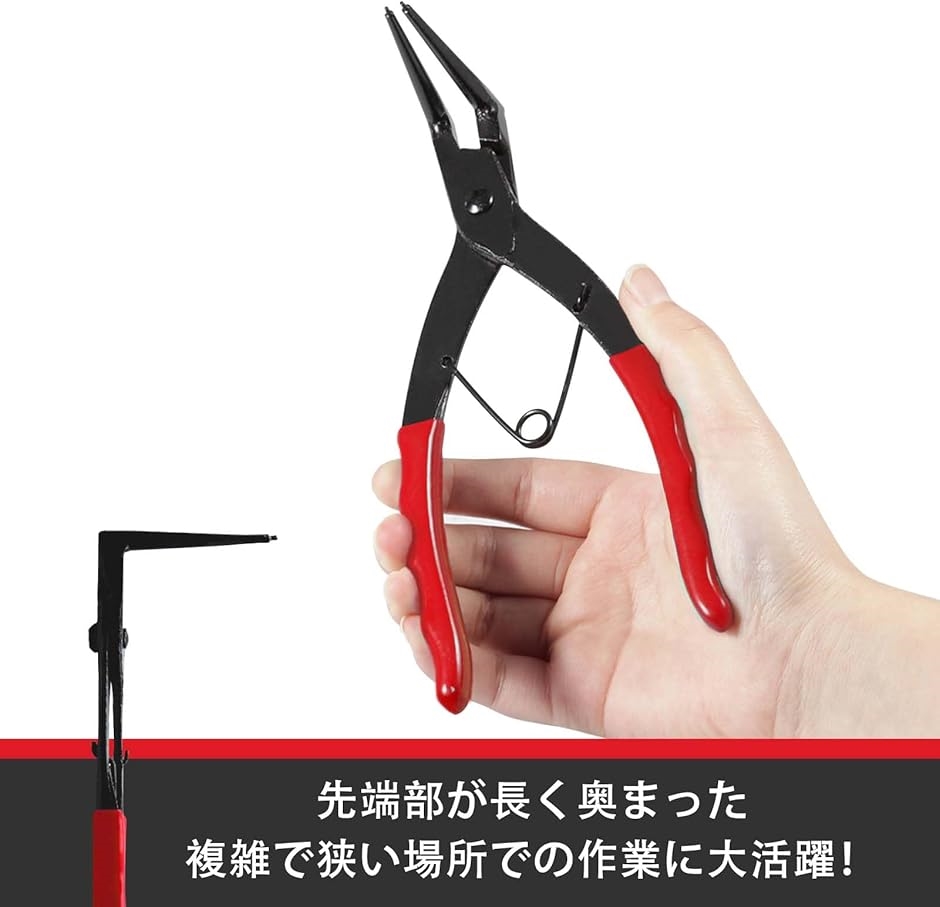 | 商品名 | ロングスナップリングプライヤー 穴用 90°ベント 曲型 ロングアーム ピンプライヤー バネ付 曲爪 ブレーキ キャリパー |