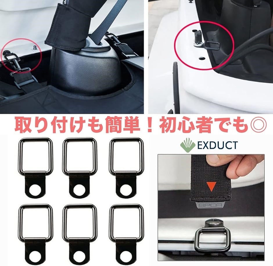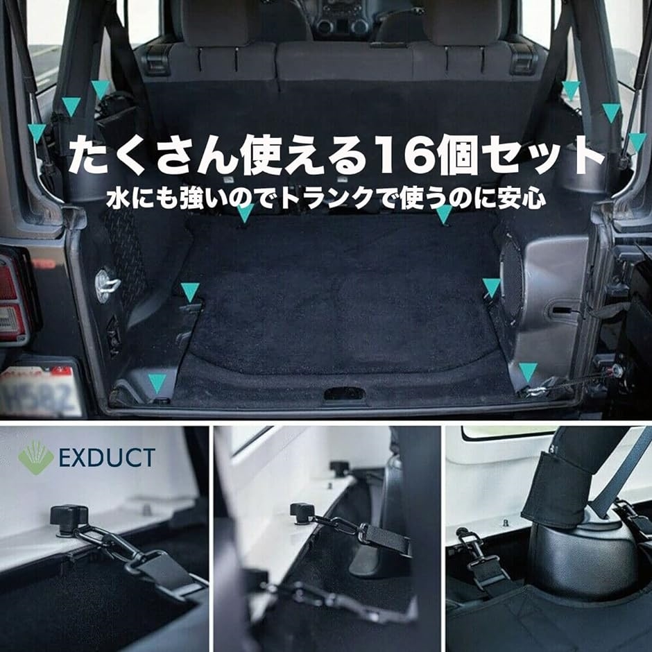 車のトランク内にセットして荷物の固定に使用するDリング16個セットです。