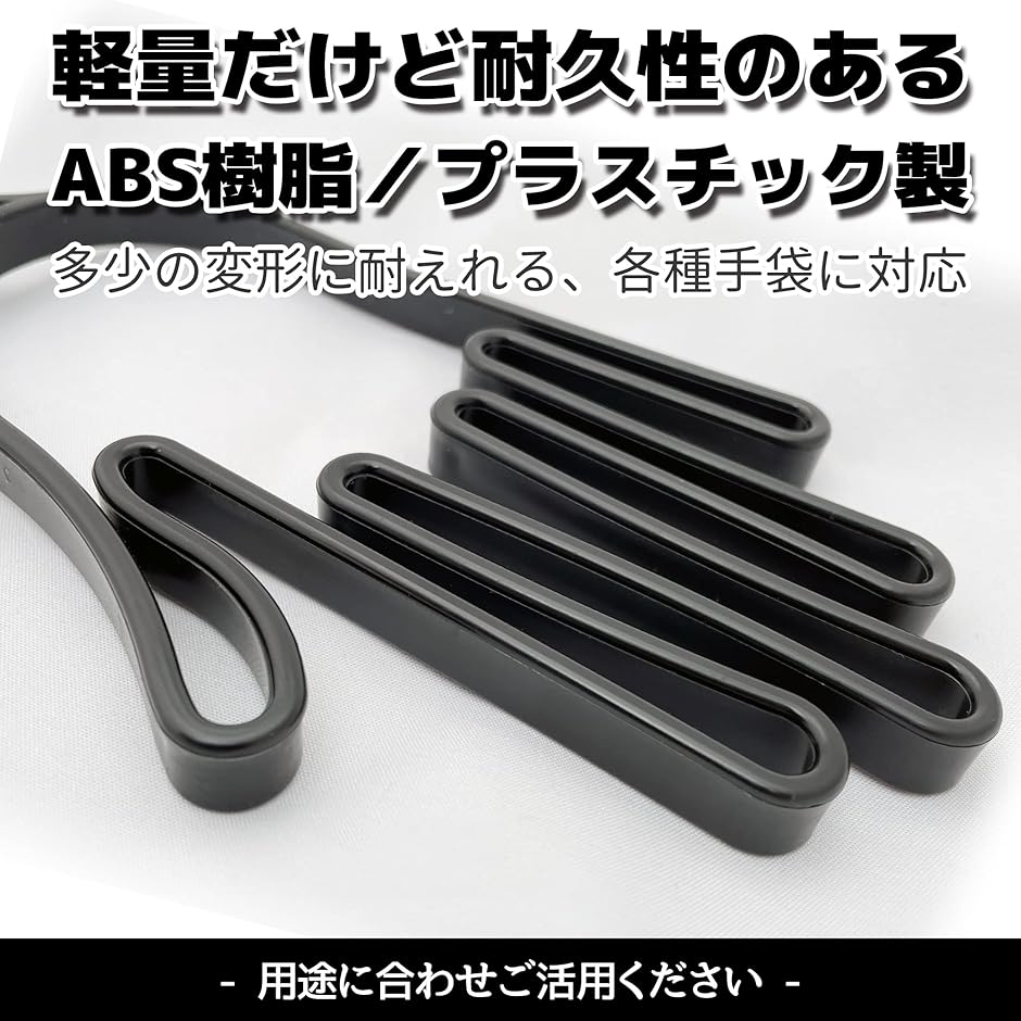 軽量、耐久性のあるプラスチック製の素材多少の変形に耐えれるので様々な手袋に対応可能です。