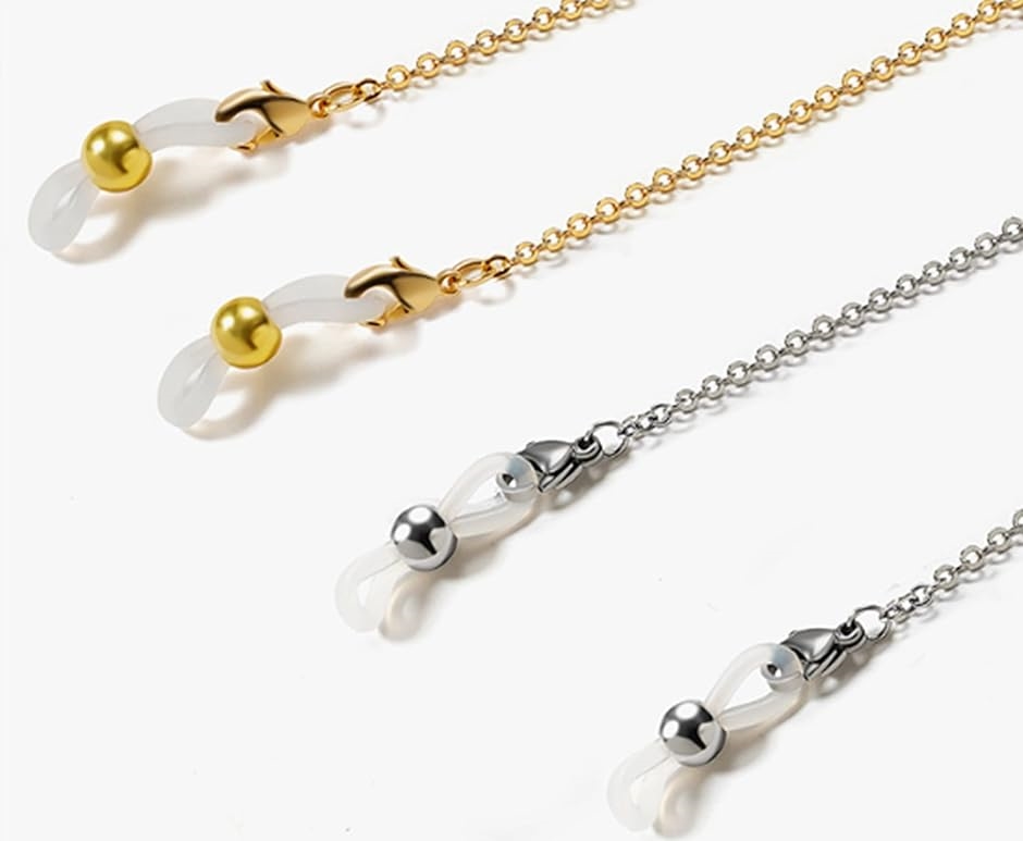 ・*「メガネチェーンで」 調整可能なラバーリングが付いておりますので、ほとんどのメガネフレームとアームに適合します。