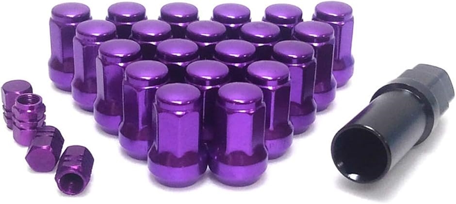 | 商品名 | 互換品 ホイールロックナット 外7角 M12 P1.25 P1.5 選べる2サイズ 7色 4穴 5穴 6穴 エアバルブキャップセット 盗難防止 57 紫P1.25 5穴用 20個 |
