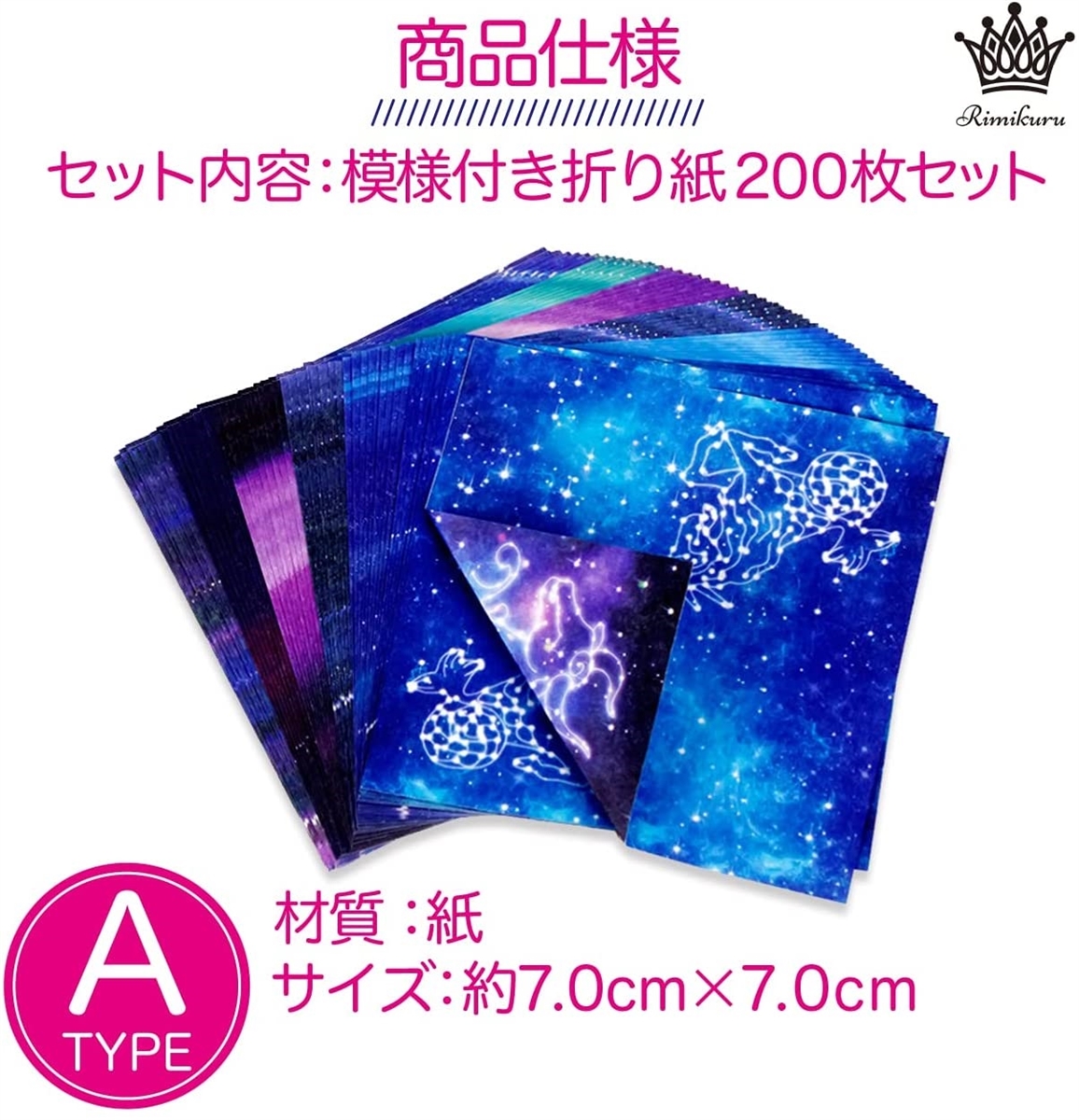 ・「商品仕様」セット内容:模様付き折り紙 200枚セット サイズ:約7.0cmx7.0cm 材質:紙