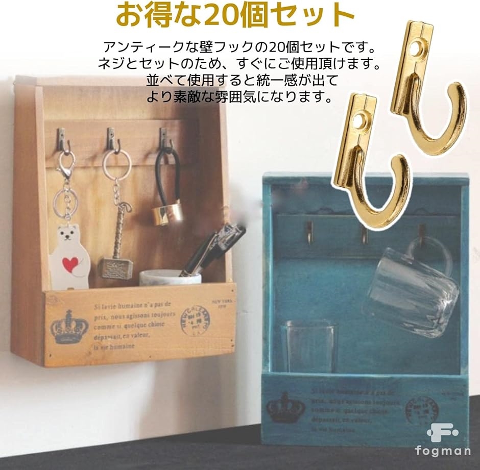 「お得な20個セット」アンティークな壁フックの20個セットです。