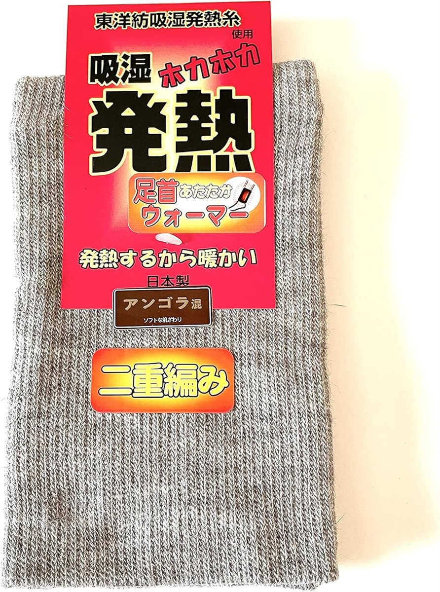 男女兼用フリーサイズ、長さ約19cm、吸湿発熱足首ウォーマー、はくだけで足元ホカホカ。