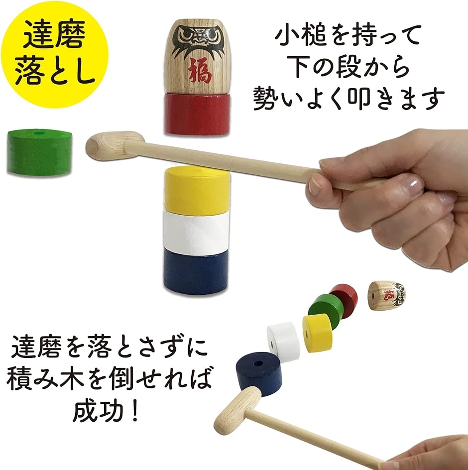 ・「詳細」サイズ 輪投げ:約W88mmxD88mmxH215mm / 重さ:約184g 達磨落とし:約W49mmxD49mmxH205mm / 重さ:約264g
