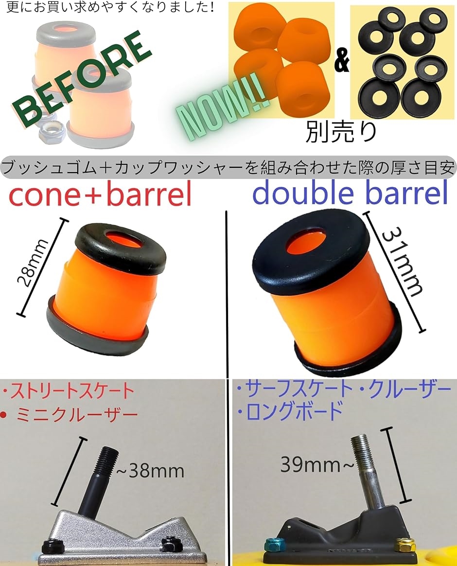 | 商品名 | スケボー ブッシュ ゴム 80a/85a/90a/95a/99a ピボット カップ 国内ブランド トラック ブッシュゴム ピボットブッシュ ソフト ミディアム ハード クルーザー ロングスケートボード サーフスケート SOFT 80a WHITE |