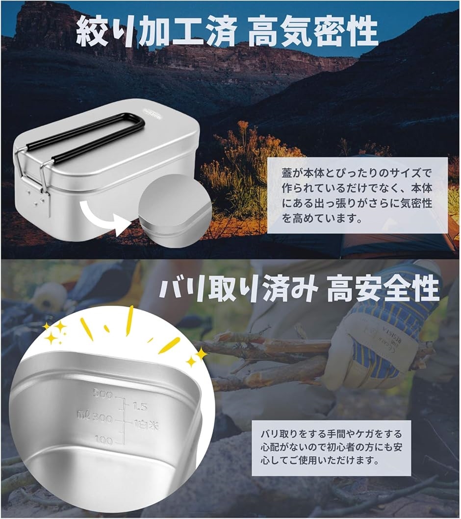・「日本食品衛生法届出済&ドイツLFGB食品安全検定済」MiliCampのメスティンは厚生労働省の食品衛生法届出済みなのでお使いいただけます。