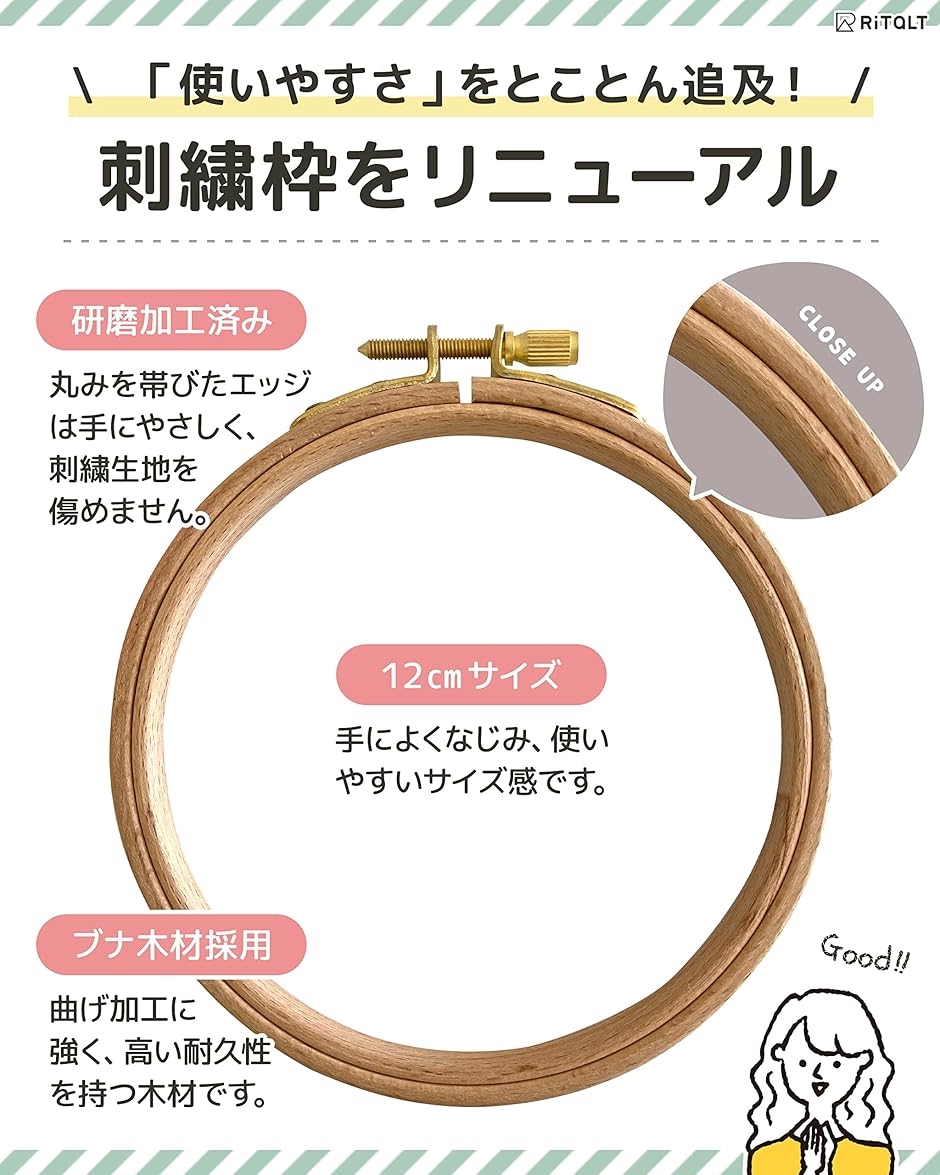 「刺繍枠をリニューアル」《研磨加工済み》丸みを帯びたエッジは手にやさしく、刺繍生地を傷めません。