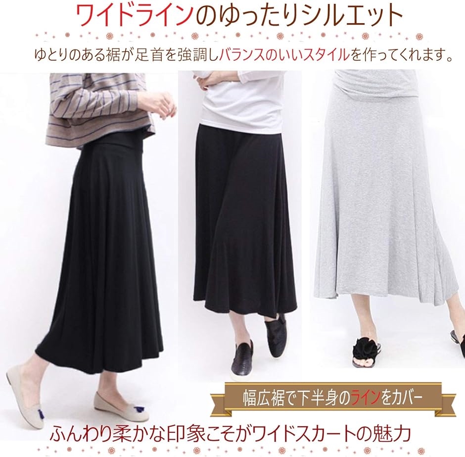 ふんわり柔かな印象こそがワイドスカートの魅力です。