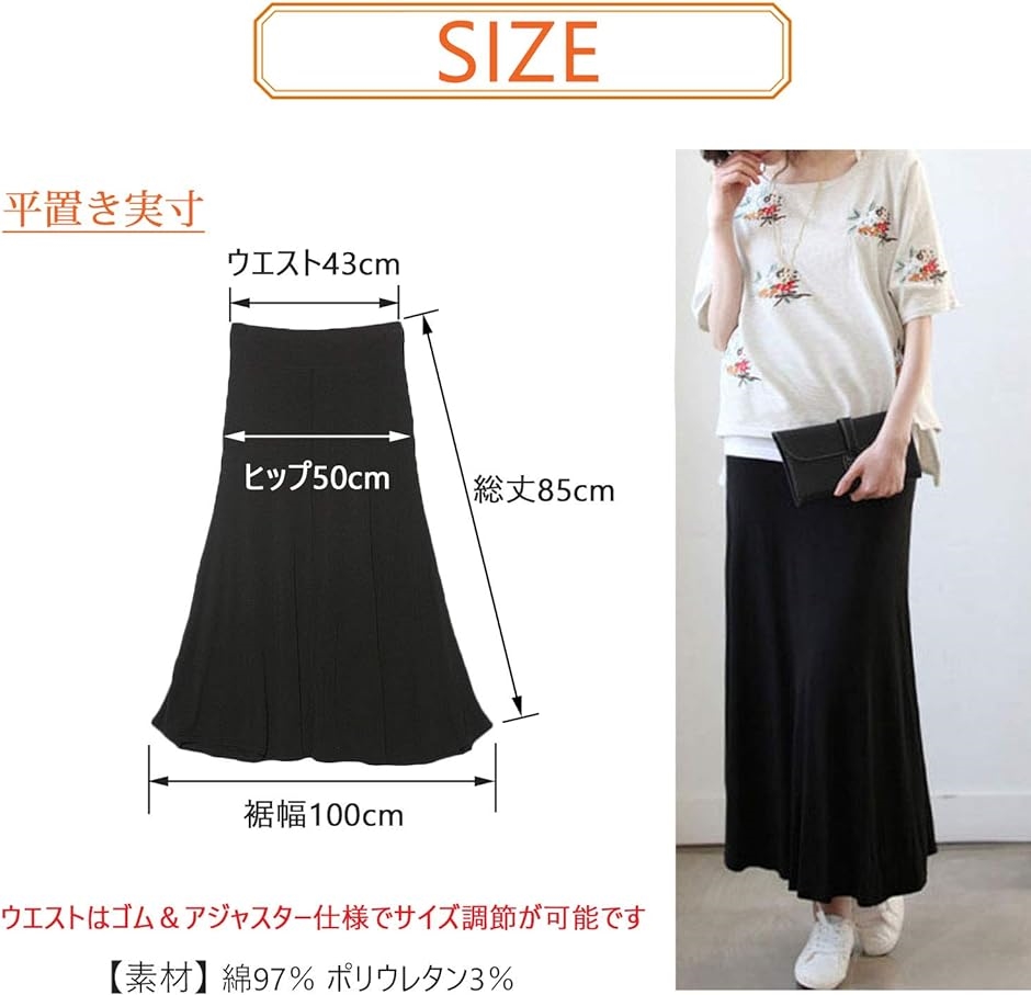 | 商品名 | マタニティ ロング スカート アジャスター付き ジャージ ブラック フリーサイズ |