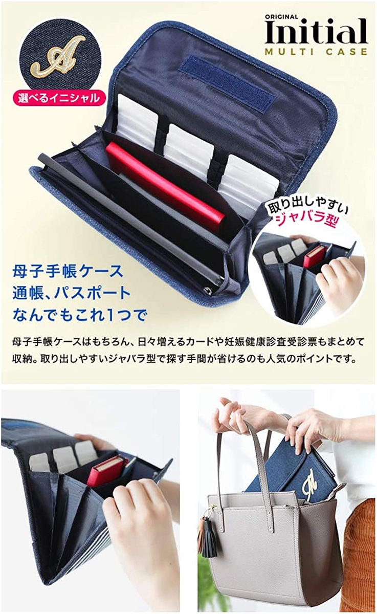 | 商品名 | 母子手帳ケース イニシャル デニム地 母子手帳 ジャバラ 二人用 診察券 お薬手帳 通帳 M |